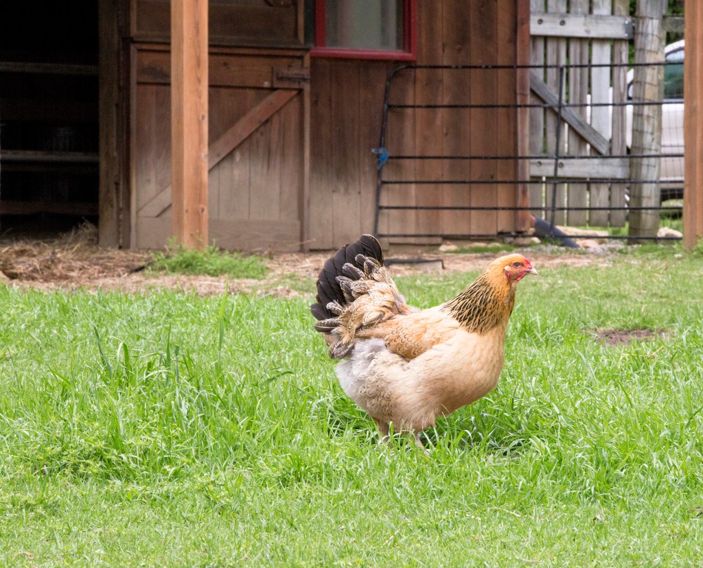 We have 30ish chickens. Mostly hens, and usually a rooster or two. The roosters are loud, and do their very best to out LOUD each other. They crow in the morning, anytime someone new comes around, a big bug is found by someone other then them, or what the heck, just because they feel like it! Personally we enjoy it, and much to our surprise our neighbors don’t seem to mind, especially when we share the eggs.