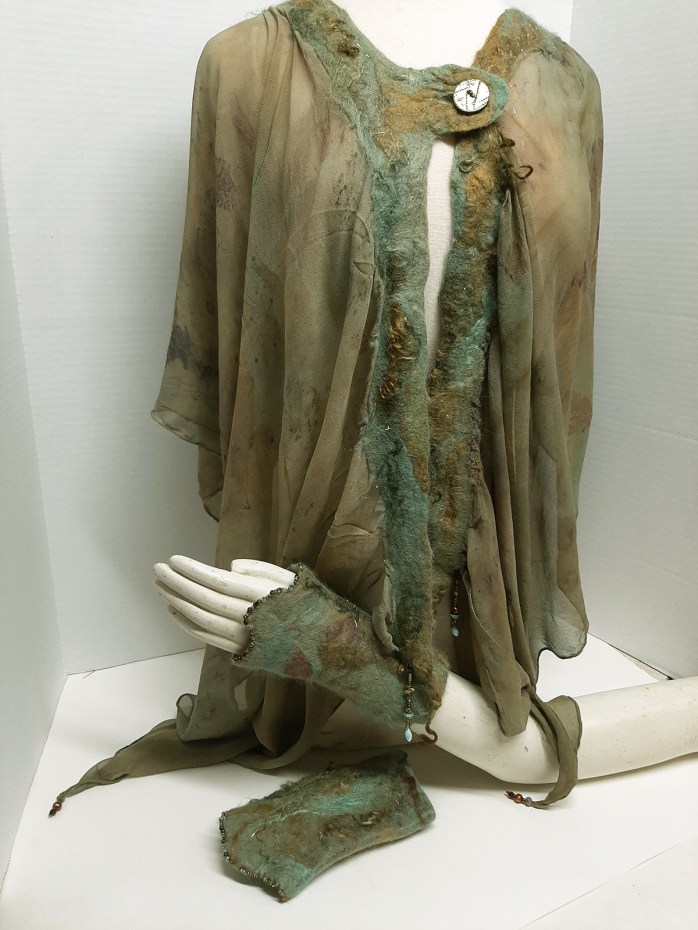 Nuno Felted Poncho with Matching Felted Wristlets