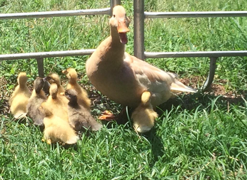 Ducks are immensely entertaining, goofy, non-aggressive (un-like geese) and are fabulous slug vacuums! They clean the pastures of slugs, helping to control meningeal worm. The ducklings are the cutest things ever!