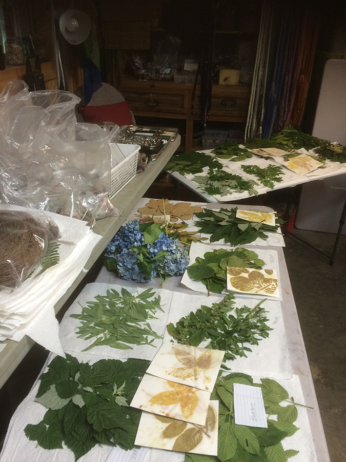 For some details on how ecoprint works, please see the description below about the INTRODUCTION to ECOPRINT class. Please note that due to material costs involved with the Discoveries in Ecoprint Class. The Class fees is $170. To register or get more information, please fill out the form at the bottom of the page and indicate your interest in the DISCOVERIES in ECOPRINT class.