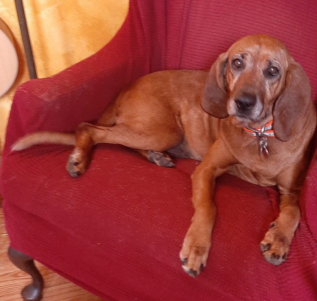 Meet Wiggly Worm. Wiggly Worm was introduced to us through the Rhodesian Ridgeback Rescue of Georgia. She is a Plott Hound/Ridge mix. She looks more like a Plott Hound, but has a perfect Ridge. She is a very silly dog and quite the singer.