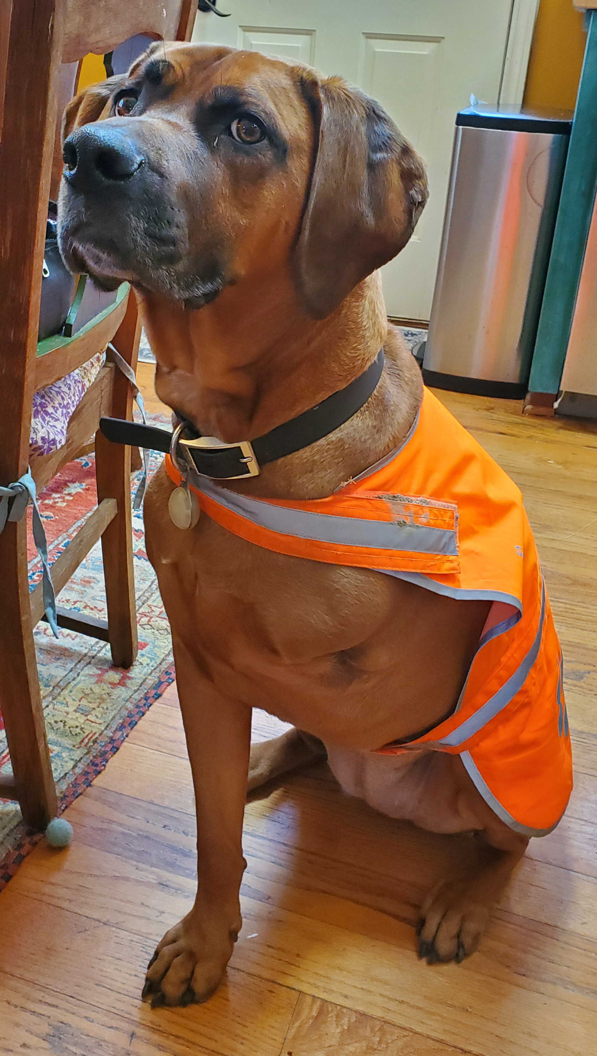 Meet Boogie Chill. Boogie Chill actually joined the team about 3 years ago, (a little behind in our updates). She is a Boxer/Plott Hound mix from what we gather. She is very sweet and has a great sense of humor.