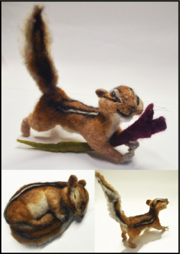 Learn to sculpt with fiber using special needles. We will make a wire armeture so your chipmunk is fully poseable. To learn more about the Chipmunk Class, click here.