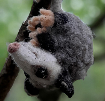 Learn to needle felt this adorable little Opossum in a one day class. He is part of our Chubby Critters Collection that is also available inkits that come with a video tutorial and instructions blog page. He has a wire tail, but soft body and legs.