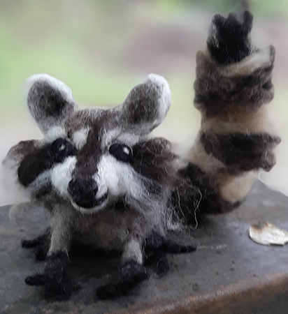 Learn to needle felt this adorable little bandit in a one day class. He is part of our Chubby Critters Collection that is also available in kits that come with a video tutorial and instructions blog page. He has a wire tail, but soft body and legs. Of the three Chubby Critters, he is probably the most challenging.