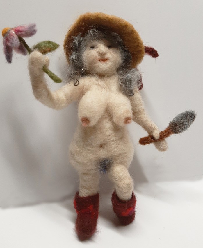 If you have always wanted to learn to make needle felted figures or dolls, this is a great starting place. The figurative study of anatomy in its truest form (naked) will help you understand how to change the shape of your figure by adding bits of fiber in all the right places. We will keep the facial features simple and focus on over all expression instead. Pick your favorite activity, be it playing a sport, gardening, or just a hike in the woods and we will use that as our base for expression with your figure.