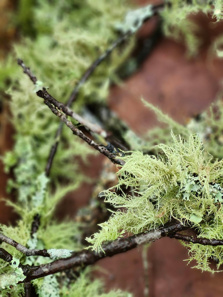 This is a photo of Usnea. A common lichen you will learn about as well as many other native plants and trees that are useful in ways you may never have considered. We will take a walk through our woods to see what we can discover and talk about the native Cherokee uses for different plants and trees. We will harvest some of what we find and discuss ways we can use the plants, barks and roots we find. We will discuss how to make and use a poultice, tea, extracts, tinctures and tonics, while learning the difference between them and their applications. We will also learn how to make Oil infusions and will make a salve from plants we discuss in the class you can take home to use.