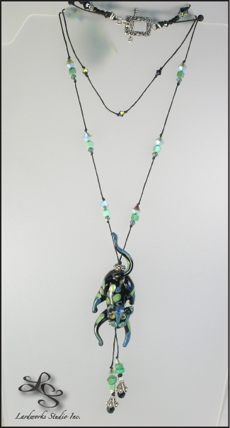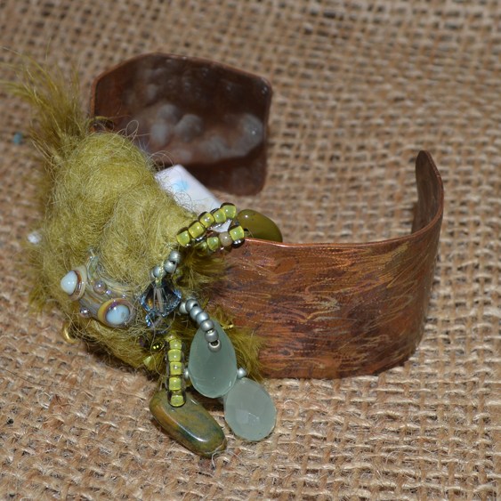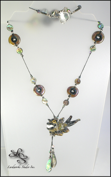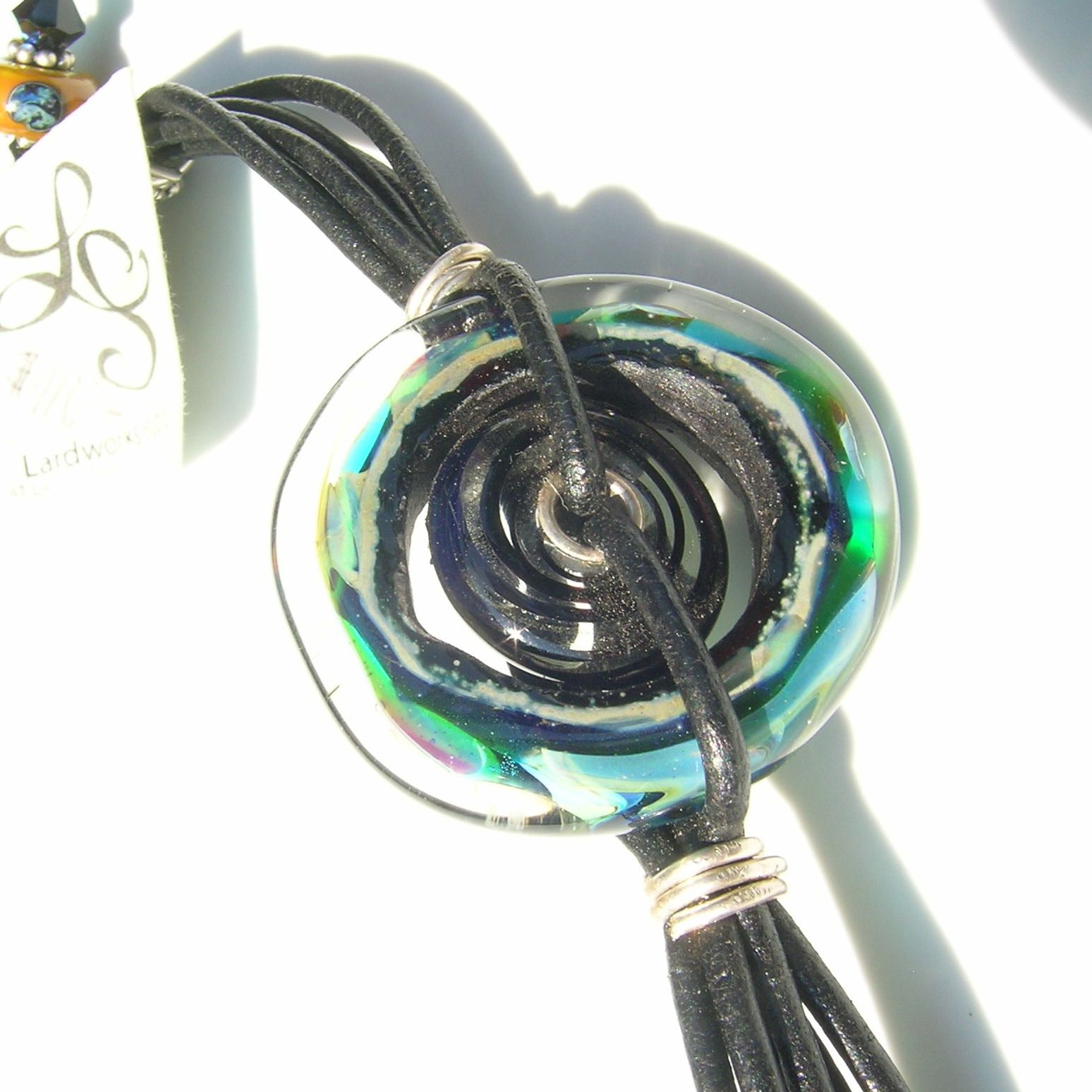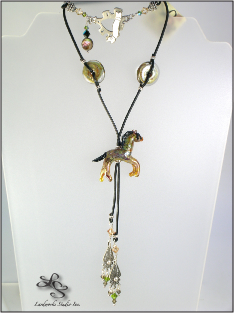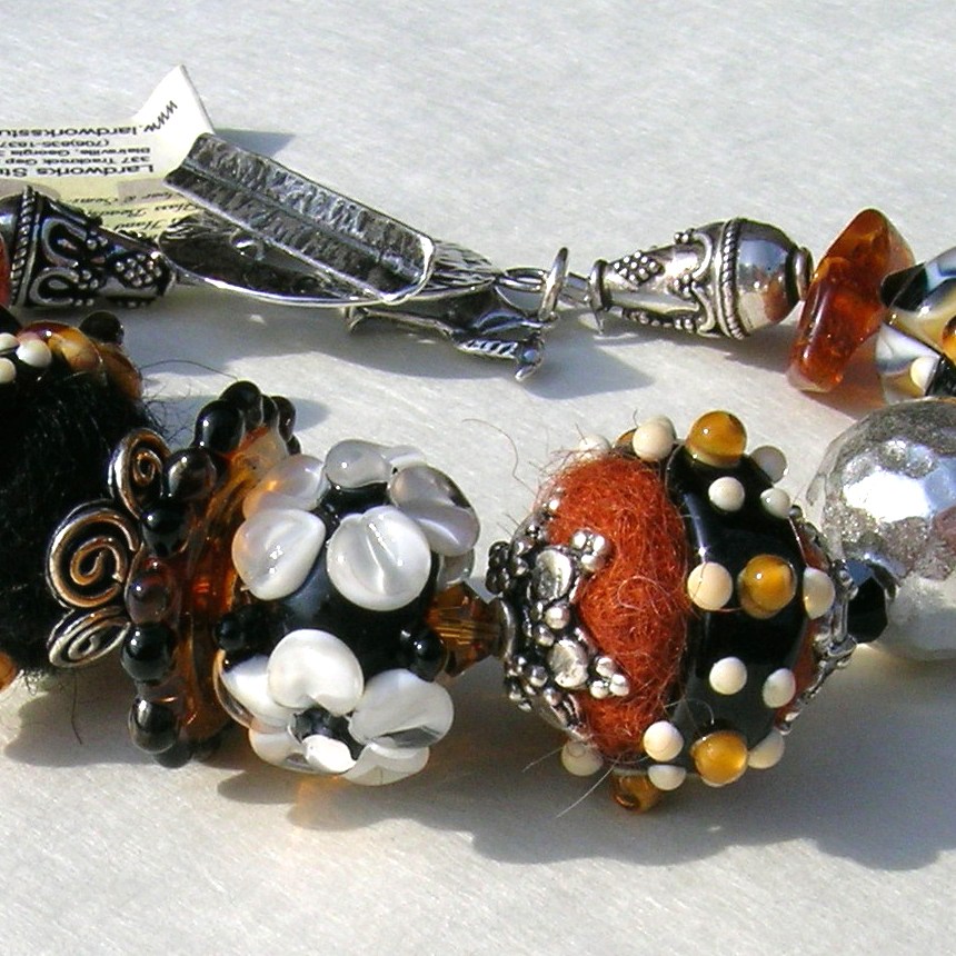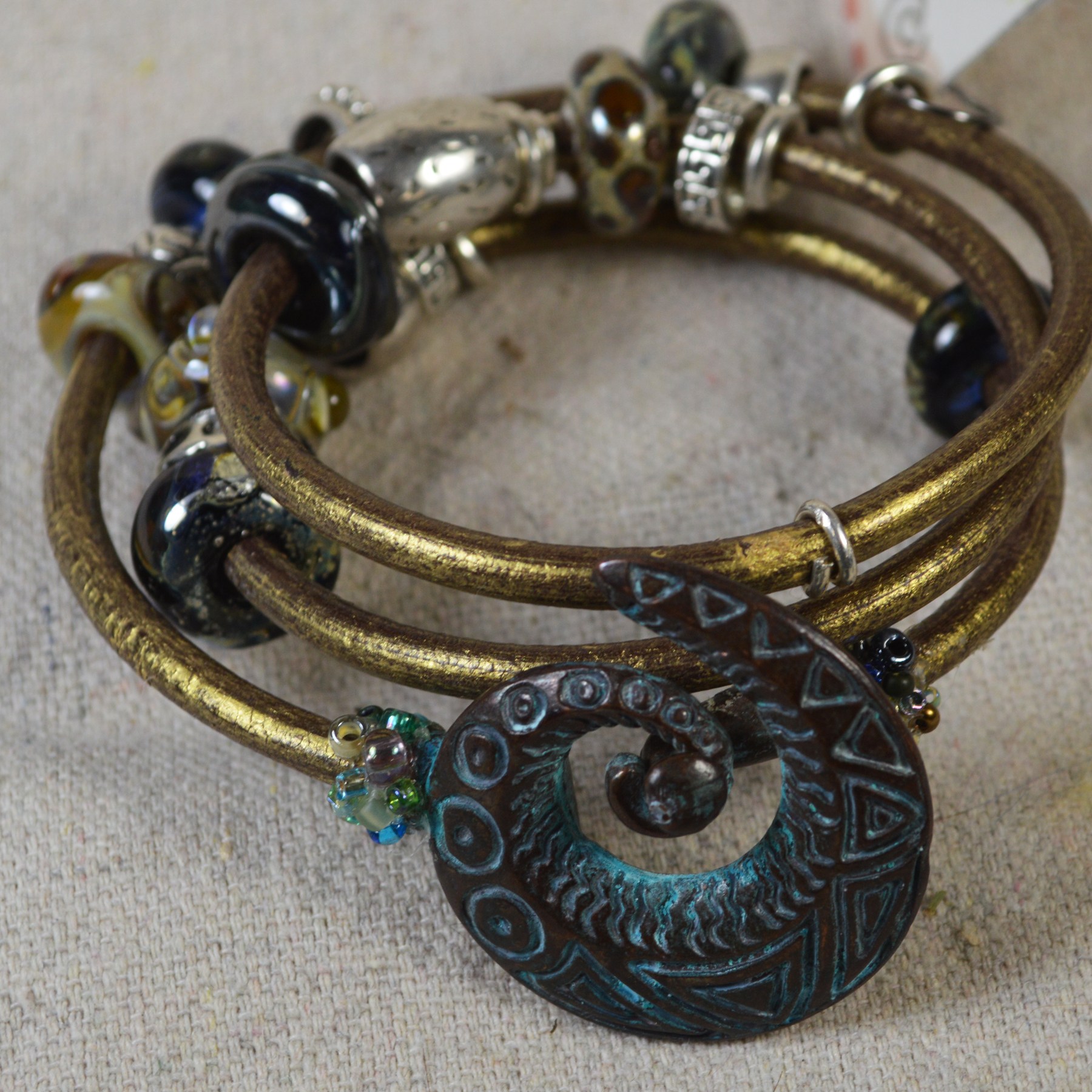 Lardworks Studio is known for it’s funky one-of-a-kind jewelry designs. We combine leather, fiber, lampwork glass beads, feathers and hand hammered metals such as brass, copper & sterling silver as well as semi -precious stones to create jewelry that is fun, different and loaded with texture.