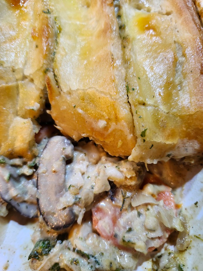 Sprinkle the pastry top with Parsley and Green onions and Enjoy!