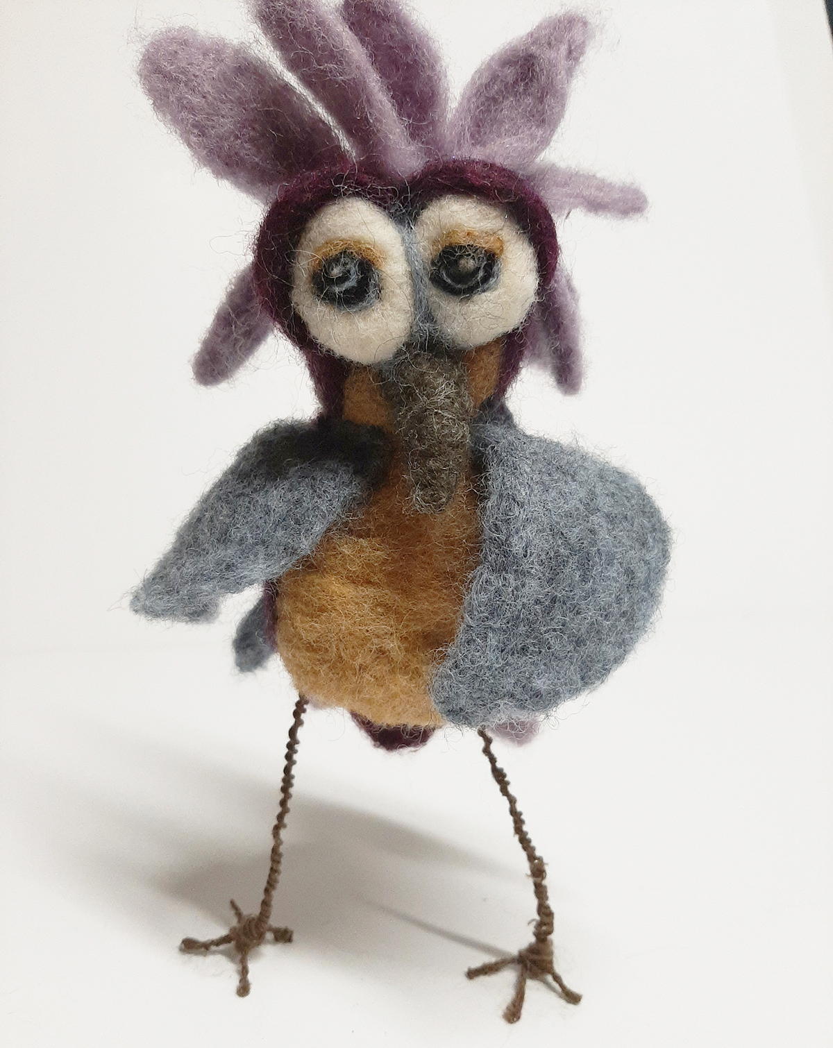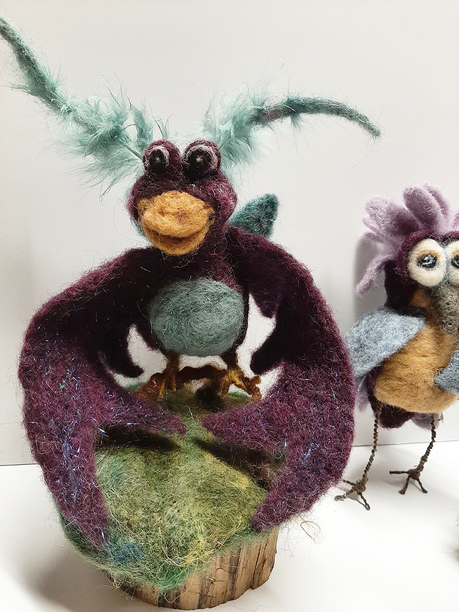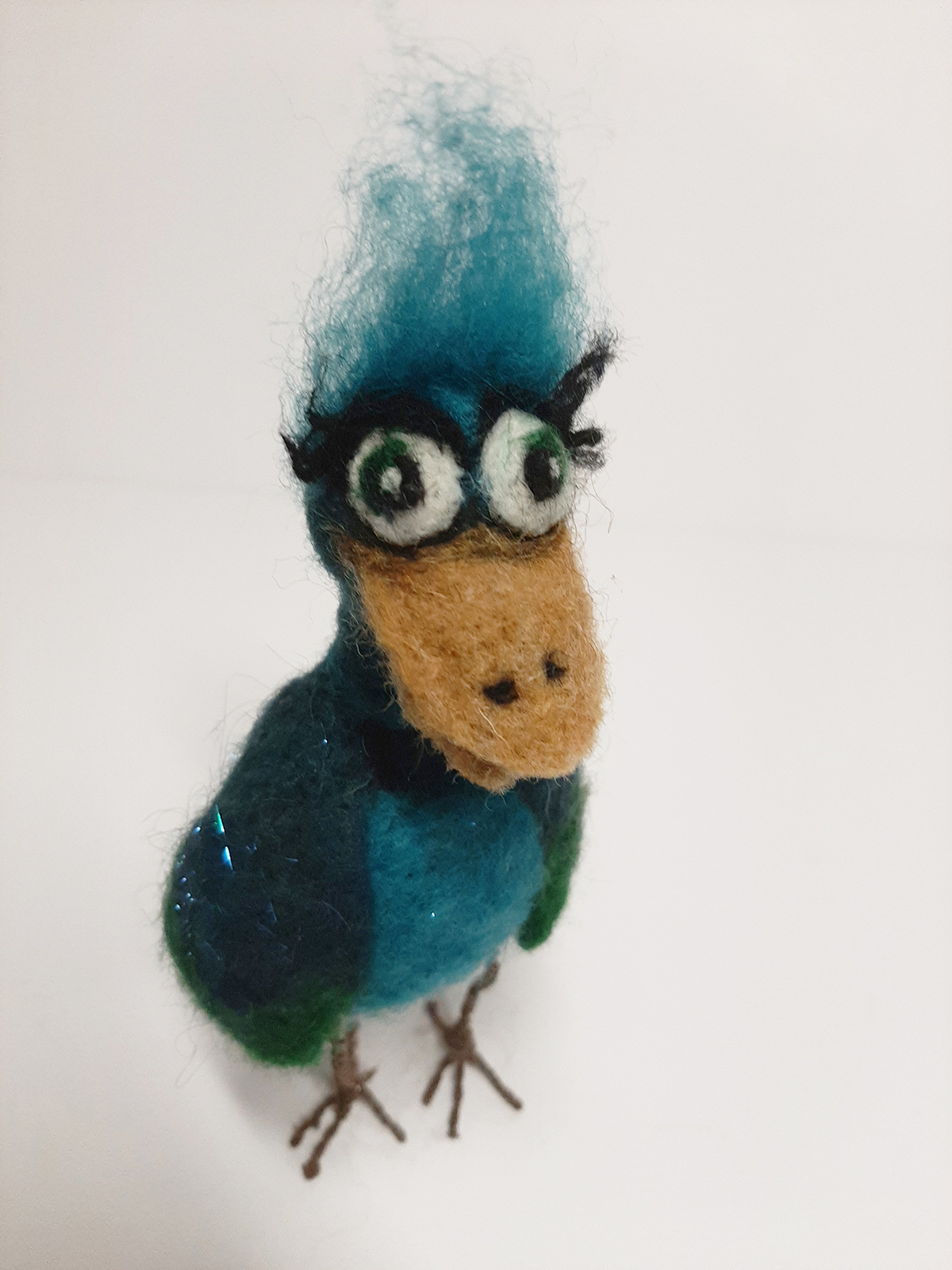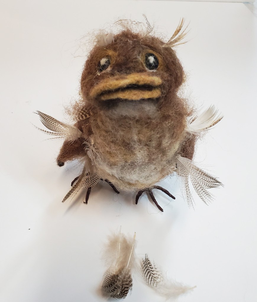Learn to use special needles to felt an adorable funky chicken, owl, eagle, or bird of any kind that inhabits your imagination! This is a great class for beginners. We will learn to make wire legs and how to add real feathers to the felt if desired. You can make several simple ones or one ‘fancy’ one in the class as time allows.