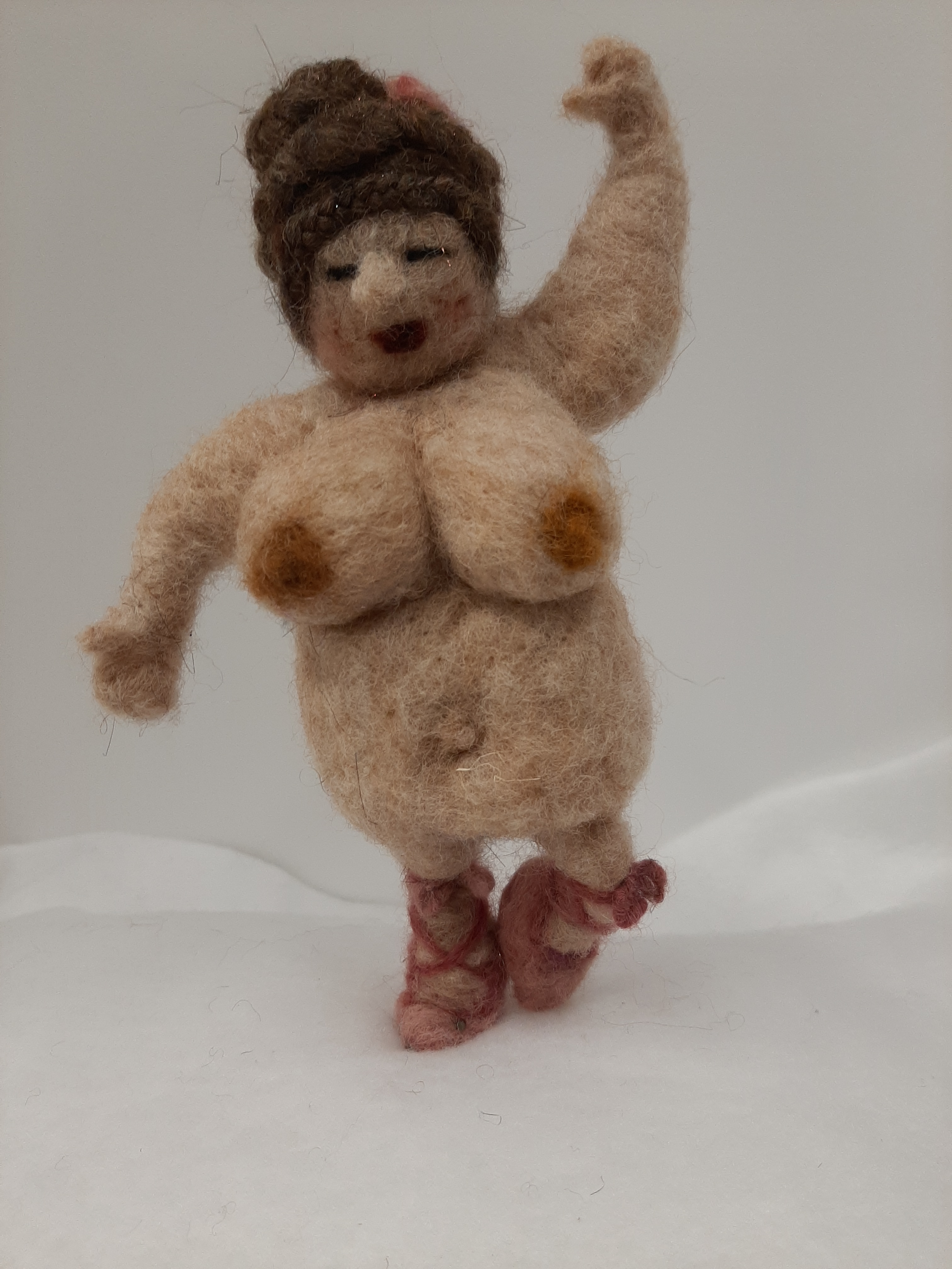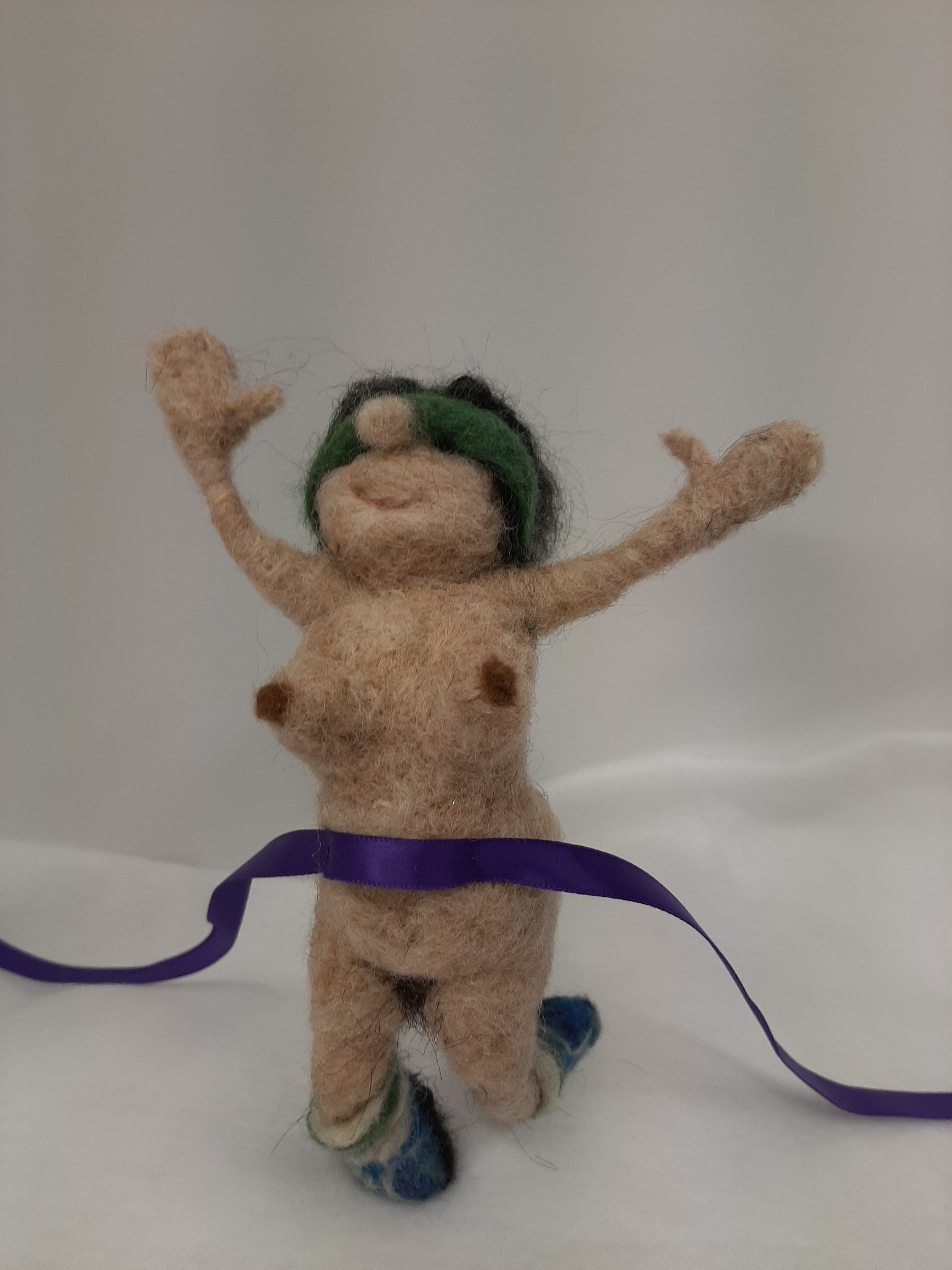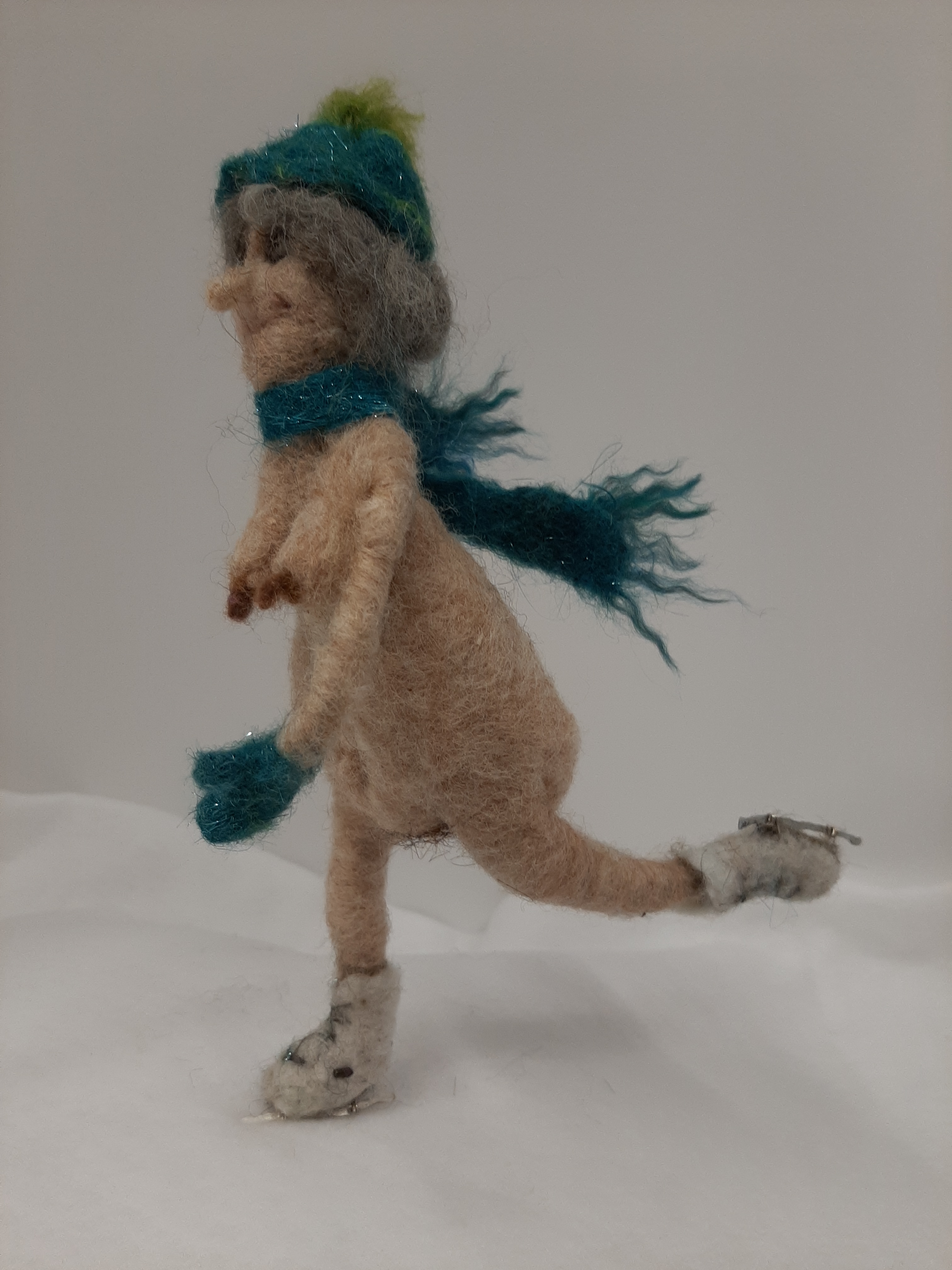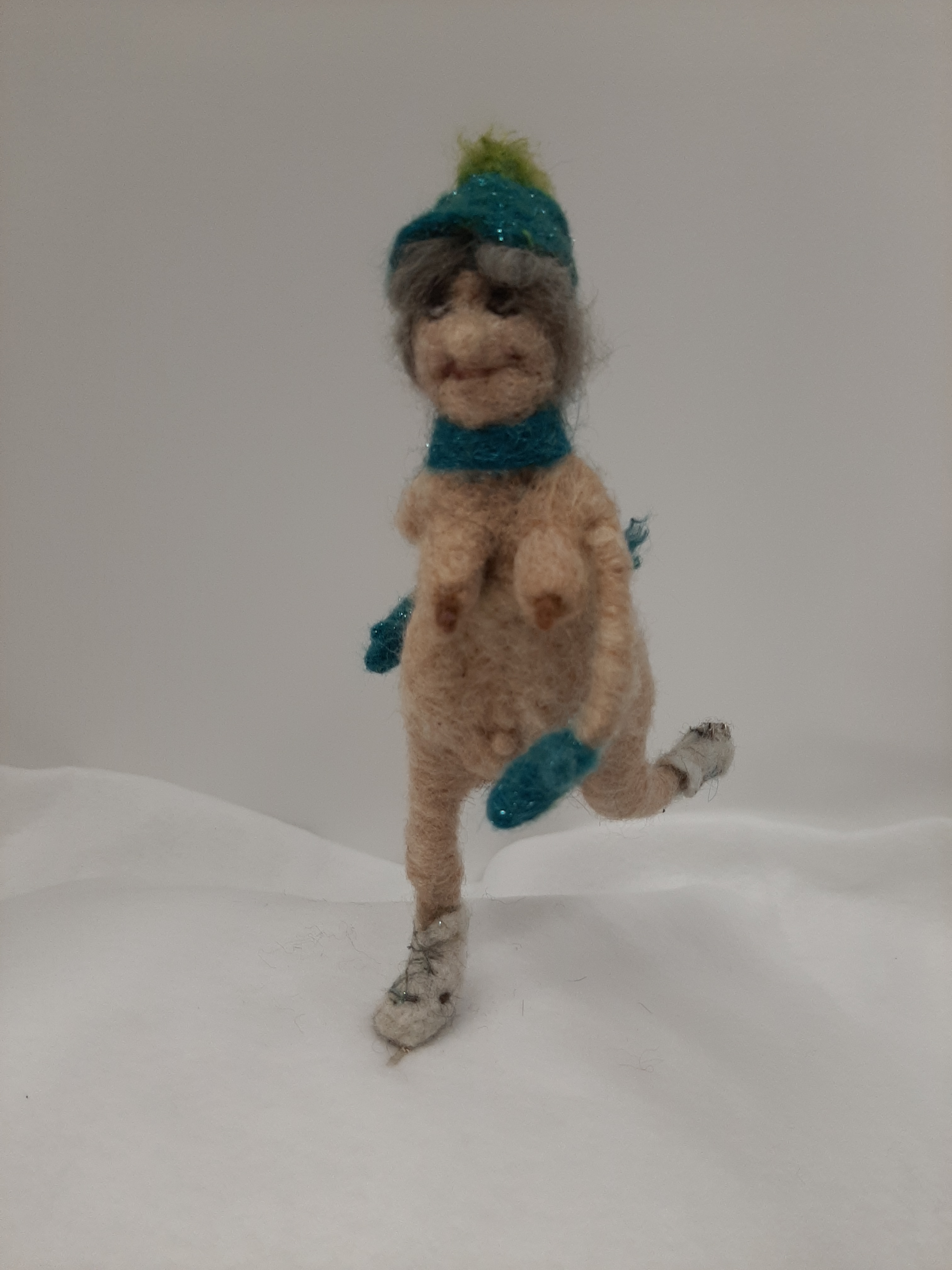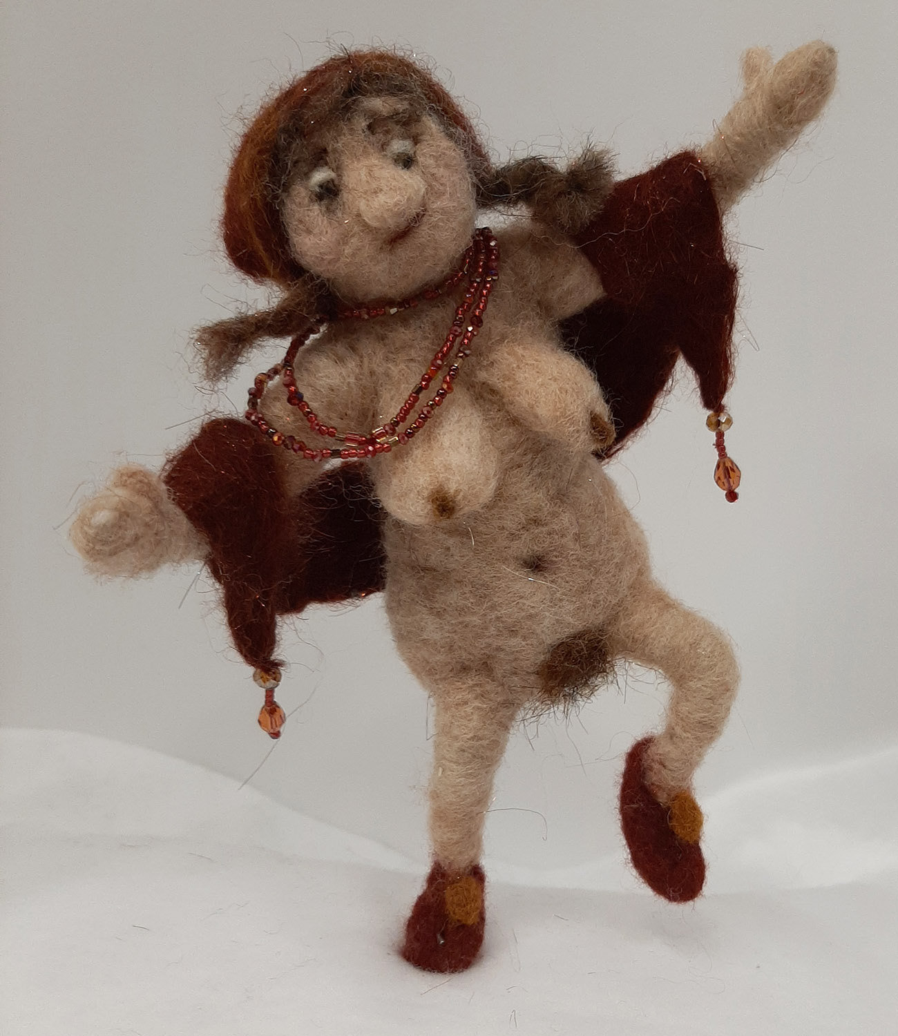 CLASS DESCRIPTION: If you have always wanted to learn to make needle felted figures or dolls, this is a great starting place. The figurative study of anatomy in its truest form (naked) will help you understand how to change the shape of your figure by adding bits of fiber in all the right places. We will keep the facial features simple and focus on over all expression instead. Pick your favorite activity, be it playing a sport, gardening, or just a hike in the woods and we will use that as our base for expression with your figure.