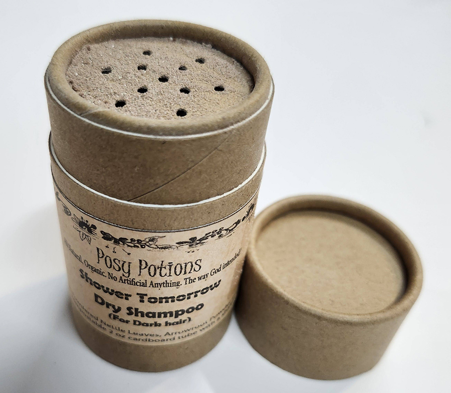 No time to shower? Shower tomorrow and feel great today. This dry shampoo keeps your hair from feeling and looking greasy. It smells great and if you have thinner hair will also give it a body boost. It comes in a sprinkle top container for easy use, anywhere. Ingredients: Powdered Nettle Leaves, Arrowroot Powder and Cocoa Powder